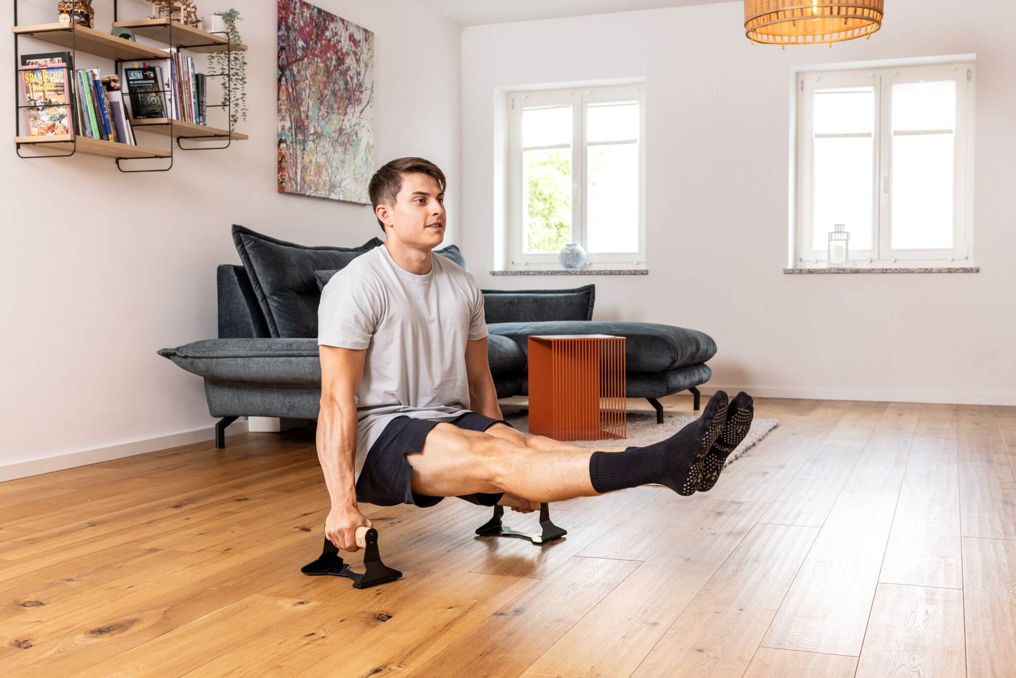 Vielseitig: Neben Klimmzügen kannst du die Bänder auch für andere Übungen wie Ringdips, Kniebeugen oder Dehnübungen nutzen.
