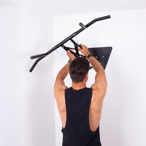 La prima sbarra per trazioni e dip amovibile al mondo, può essere montata all'interno su una parete di casa o su una parete esterna. La barra per trazioni e dip di Pullup & Dip ti offre la massima flessibilità e rende te e il tuo allenamento per trazioni indipendenti da qualsiasi palestra o campo sportivo.