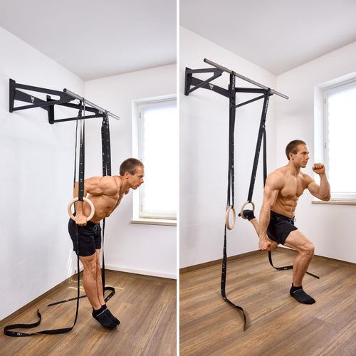 - Ideale per muscle-up, pull-up e sollevamenti frontali grazie alla distanza extra dalla parete di 80 cm.
