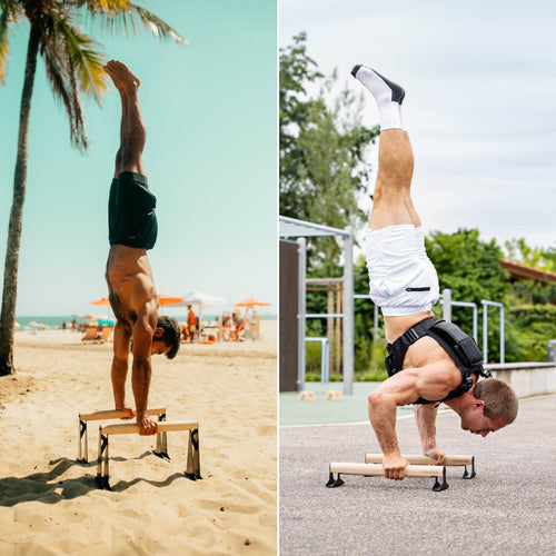 Le parallele sono l'attrezzatura perfetta per Calisthenics e Bodyweight Training. Le nostre parallele in legno appositamente sviluppate da Pullup & Dip ti offrono l'attrezzatura perfetta per il tuo allenamento indoor e outdoor.