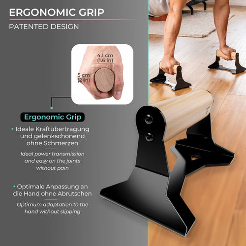 Le maniglie per flessioni di altissima qualità sul mercato con impugnatura ergonomica in legno