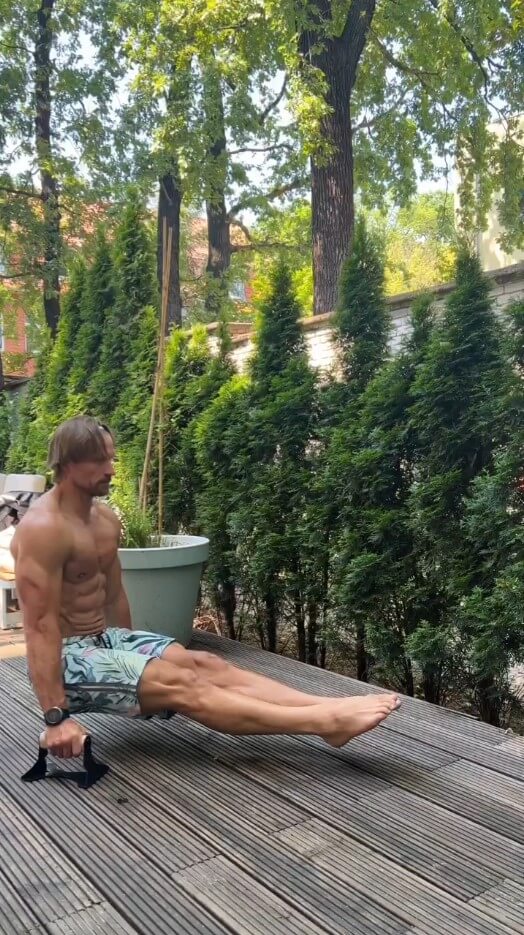 Oltre ai piegamenti, puoi ovviamente utilizzare maniglie per piegamenti in modo ottimale anche per l'allenamento della verticale.